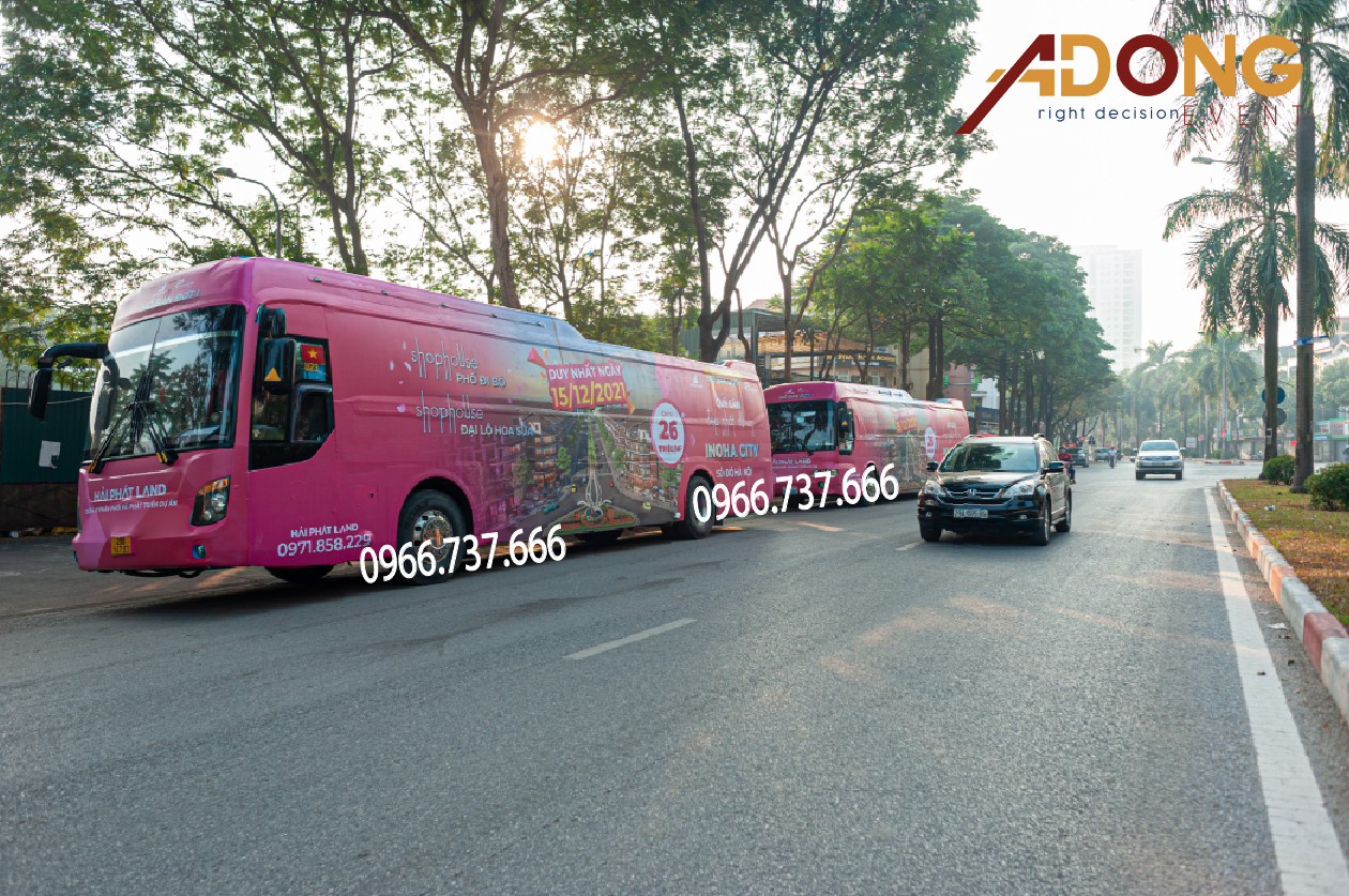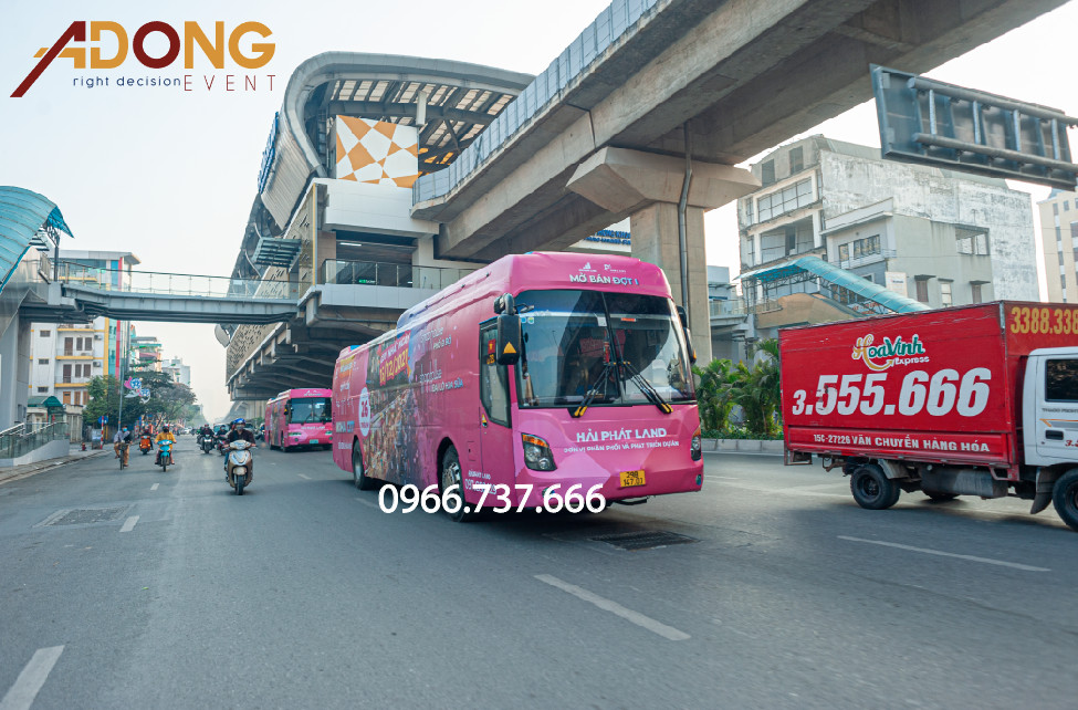 Quảng cáo Roadshow ô tô 45 chỗ là hình thức quảng cáo mới mẻ, độc lạ và hiệu quả. Dàn xe ô tô 45 chỗ xuất hiện trên đường phố, xung quanh thân xe là hình ảnh logo, bộ nhận diện và thông điệp của chiến dịch, doanh nghiệp.