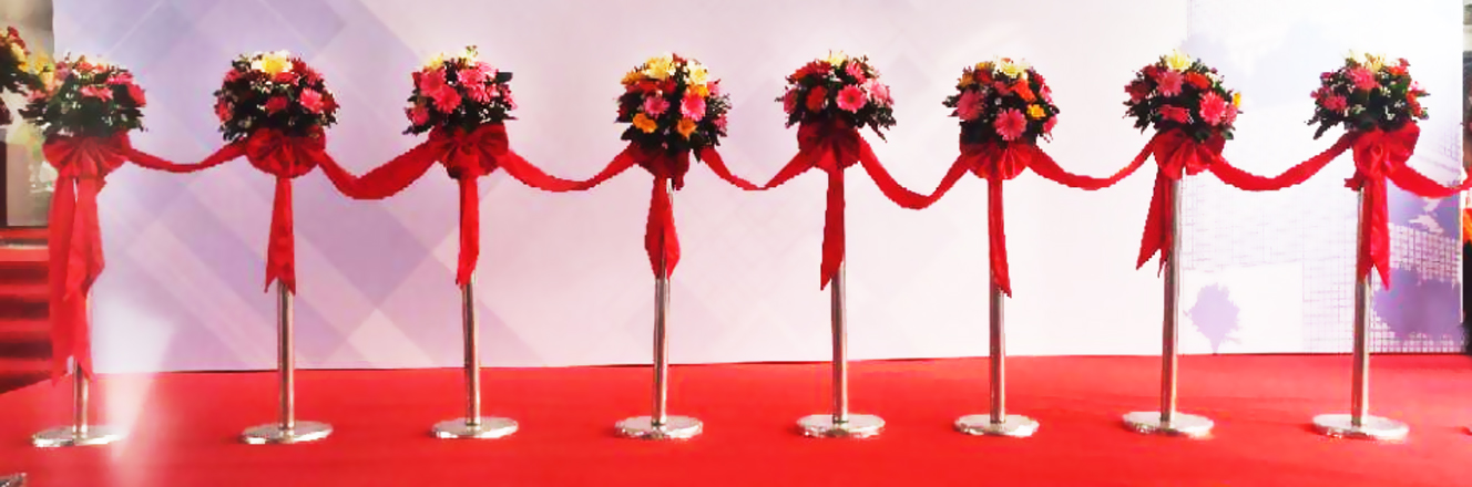 Hoa lụa màu đỏ đặt trên khay thường lựa chọn những số lẻ. Màu của hoa đặt trên khay sẽ cùng với màu của dải băng lụa. Điều này tạo nên sự cân đối, hài hòa trong bộ cắt băng khánh thành.
