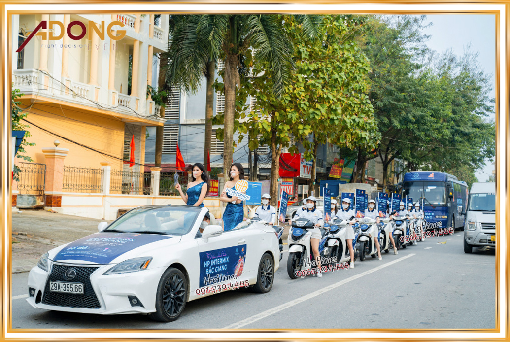 Vừa qua, Sự Kiện Á Đông đã tổ chức thành công sự kiện Roadshow Ra Mắt Dự Án Hp Intermix Bắc Giang – Phố Đi Bộ Đẳng Cấp Quốc Tế tại thành phố Bắc Giang và thành phố Bắc Ninh. Sự kiện roadshow cùng với đội ngũ PG xinh đẹp, trẻ trung và năng động đã mang lại nhiều sự thu hút cũng như sự quan tâm đặc biệt của người dân tại 2 thành phố lớn là Bắc Giang và Bắc Ninh. Với xe mui trần dẫn đoàn và dòng xe SH và sau cùng là một chiếc xe 45 chỗ được sử dụng trong sự kiện roadshow thì sự sang trọng, quý phái lại được tôn lên nhiều lần hơn nên cũng đã thu hút được rất nhiều sự chú ý cũng như quan tâm của người dân tại 2 thành phố này.