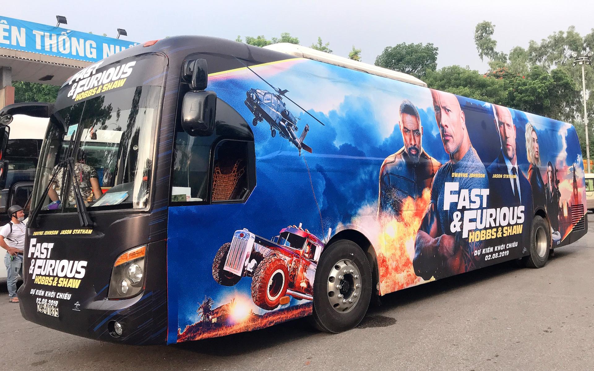 Quảng cáo bọc kín toàn bộ phần bên ngoài thân xe tạo thành vật thể quảng cáo khổng lồ di động tạo ấn tượng trên đường phố. Loại hình Roadshow quảng cáo ấn tượng này sẽ giảm thiểu được chi phí nhân sự. Riêng xe 45 chỗ có diện tích lớn nên thể hiện được tốt hơn các thông điệp mà doanh nghiệp muốn truyền tải.  Roadshow được thiết kế dán decal trên thân xe có khả năng thể hiện hình ảnh sản phẩm. Thông thường các chiến dịch tổ chức roadshow ngắn hạn sẽ chọn lựa loại hình này cho hiệu quả ấn tượng.